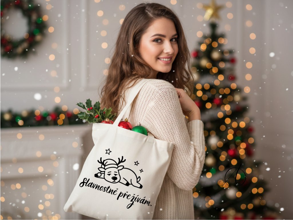 Bavlněná nákupní taška z 100% bavlny s vánočním potiskem pro pohodlné každodenní nošení.