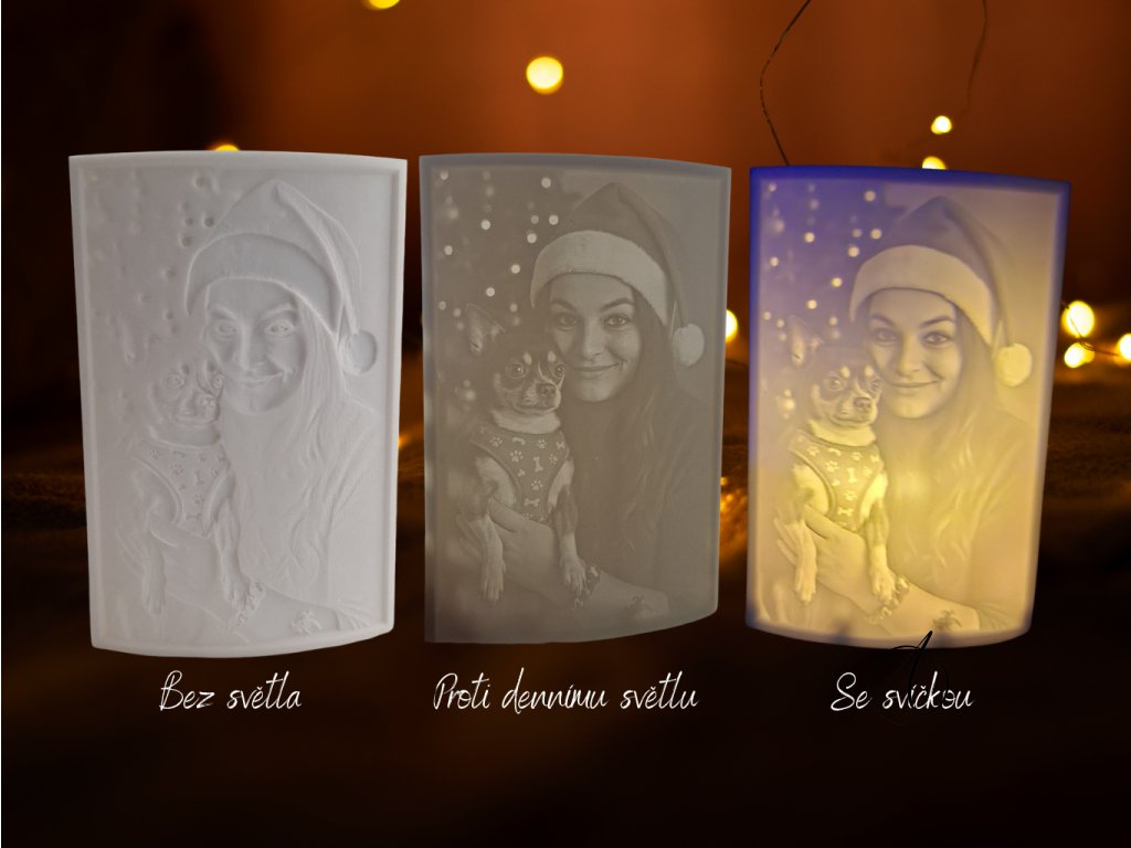 Díky speciální technice tisku se fotografie po rozsvícení plasticky vykreslí světlem a vytvoří jedinečnou atmosféru – ideální jako dárek plný emocí.