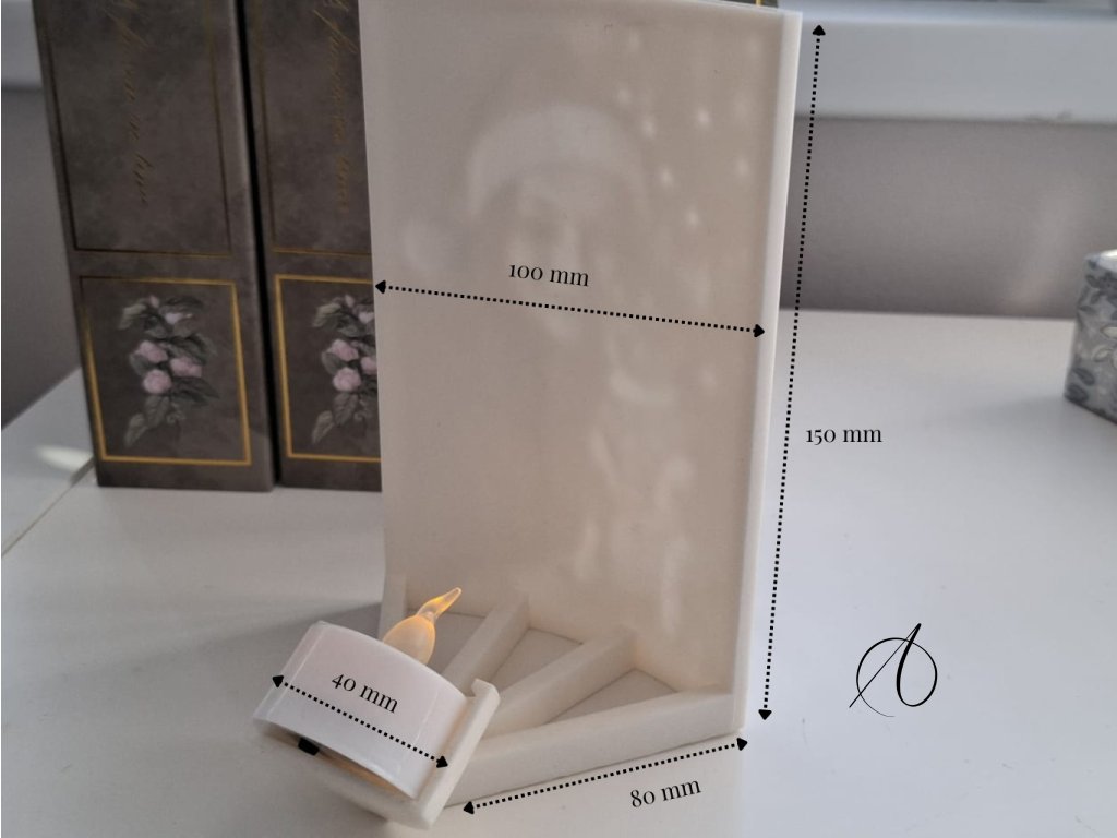 Personalizovaná fotolampa z 3D tisku, dodávaná s malou elektrickou svíčkou, která po rozsvícení promění vaši fotografii v jemnou světelnou vzpomínku.